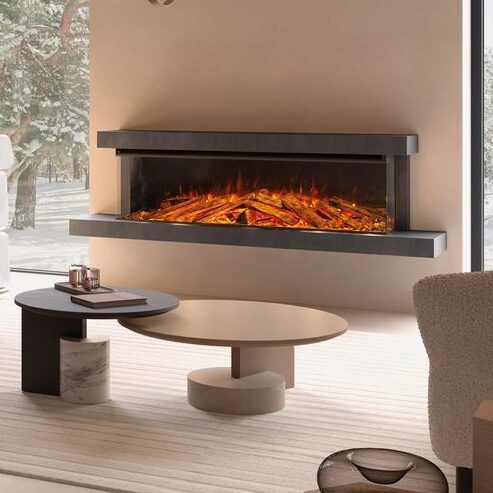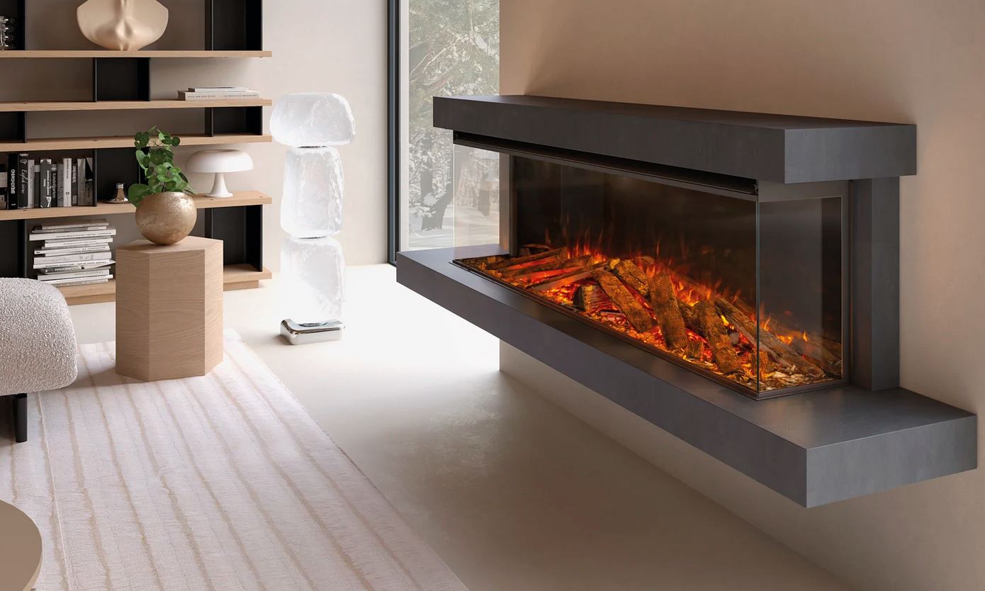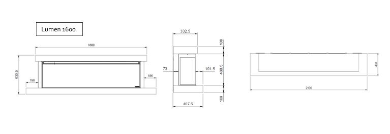 LUMEN 1600 ist der unangefochtene Mittelpunkt des Raumes. Er kann mit Rahmen an der Wand montiert oder eingebaut werden – wahlweise in drei Ausführungen: frontal, eckig oder panoramisch. Jede Perspektive betont die Flamme und schafft ein intensives, fesselndes Erlebnis.