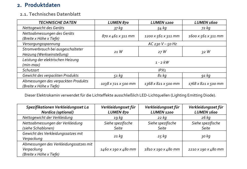 Elektrokamin La Nordica Lumen 1200 ohne Verkleidung