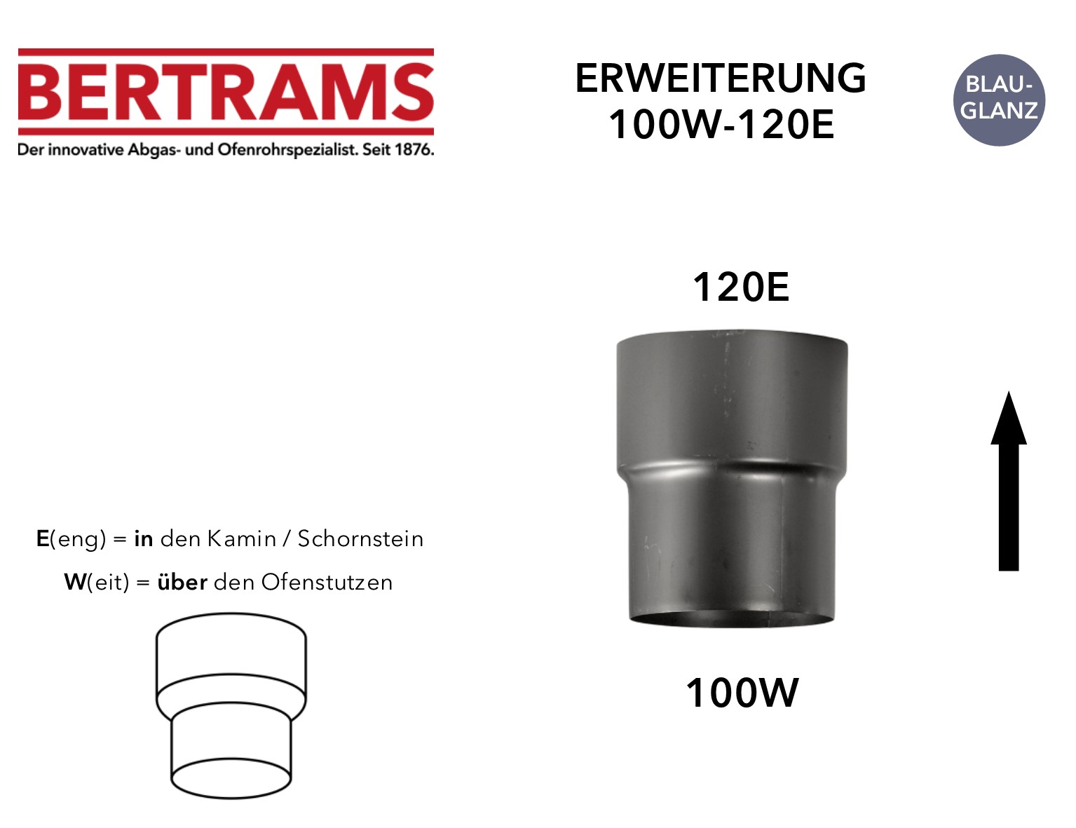 Erweiterung Bertrams blauglanz Ø Ofen 100 – Kamin 120 mm