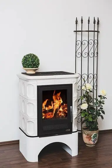 Kaminofen ABX Vermont Mineralputz weiß Sims schwarz