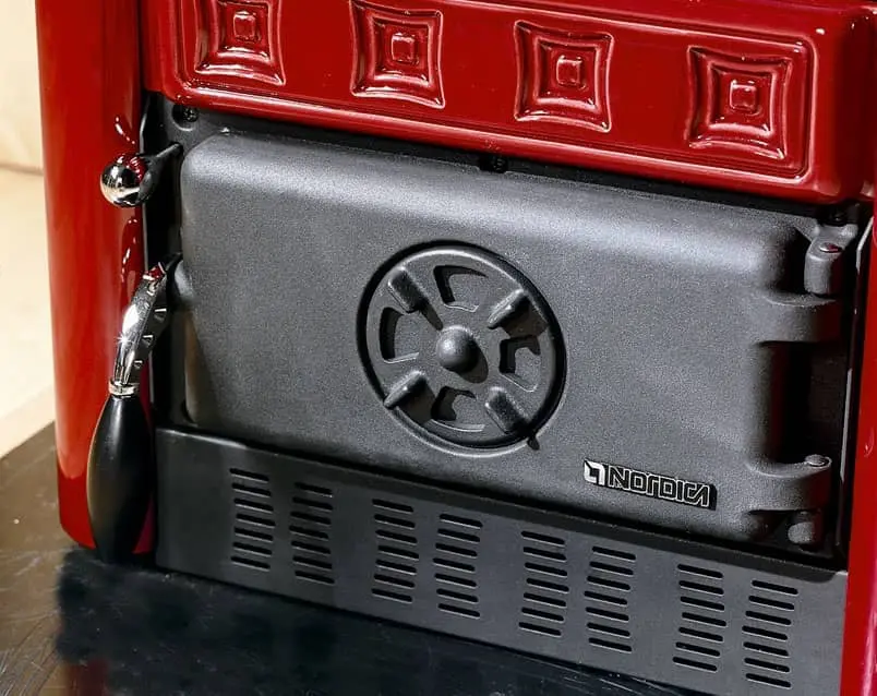 Kaminofen La Nordica Isetta con cerchi 16 schwarz Gusseisen mit Kochplatte für Notfälle im Special Sale