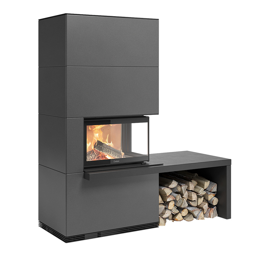 Kaminbausatz Contura MyCube T Speckstein Fenstereck rechts Gusseisenfront die neue Serie