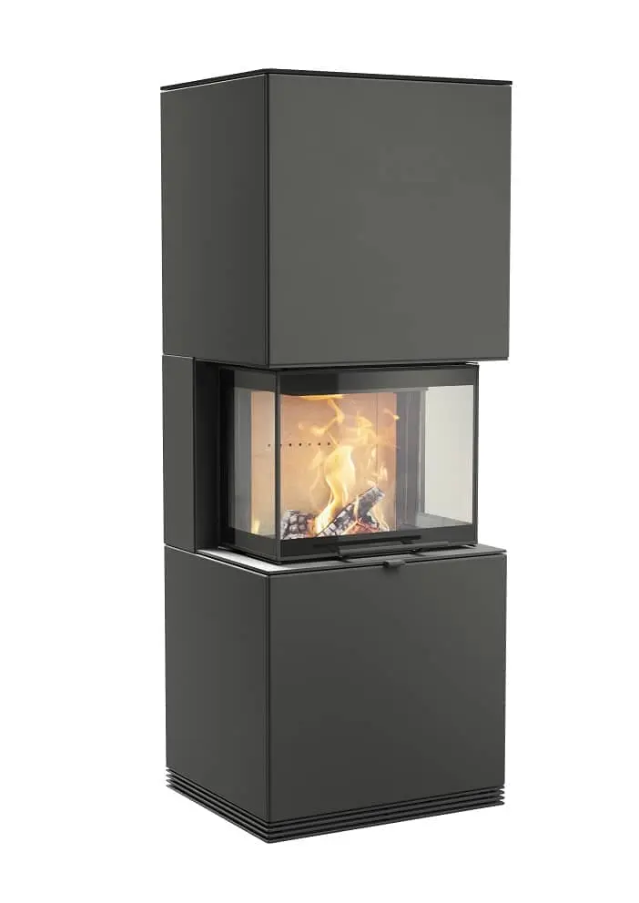 Kaminbausatz Contura MyCube Stahl schwarz 3-Seiten Glas Gusseisenfront die neue Serie