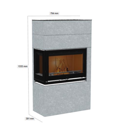 Kaminbausatz Contura MyCube TG Speckstein Fenstereck rechts Glasfront die neue Serie