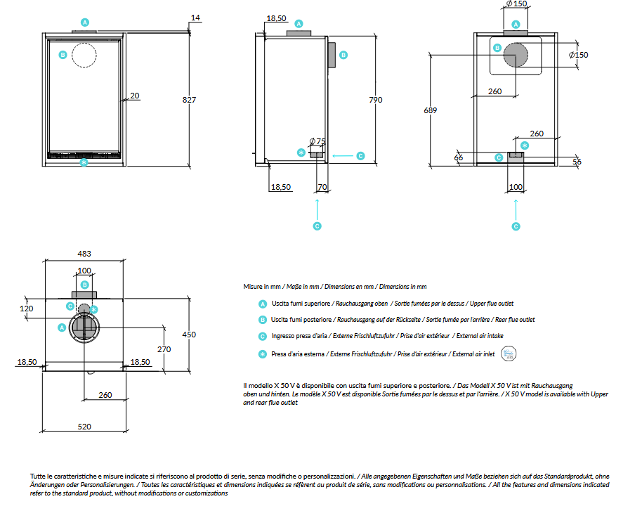 Kamineinsatz Rizzoli Serie X 50 V