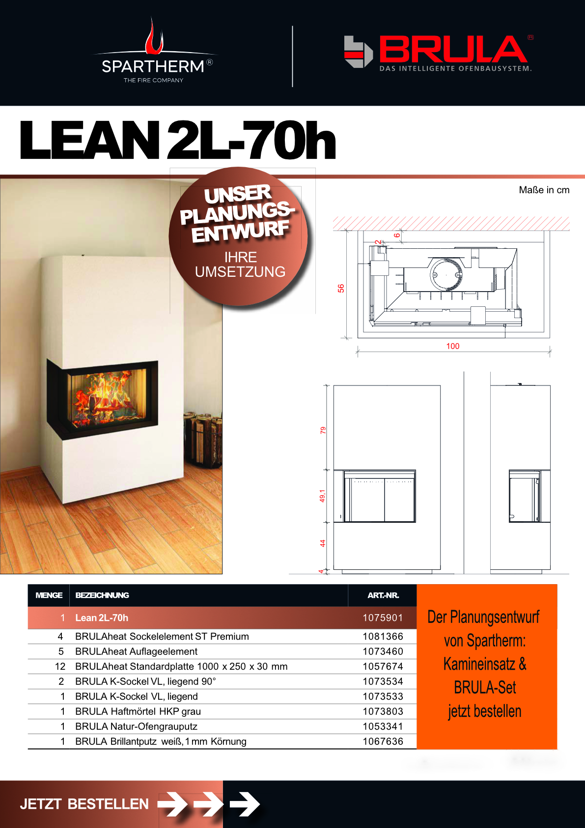 Kamineinsatz Spartherm Lean 2L-70h optional mit BRULA-Set