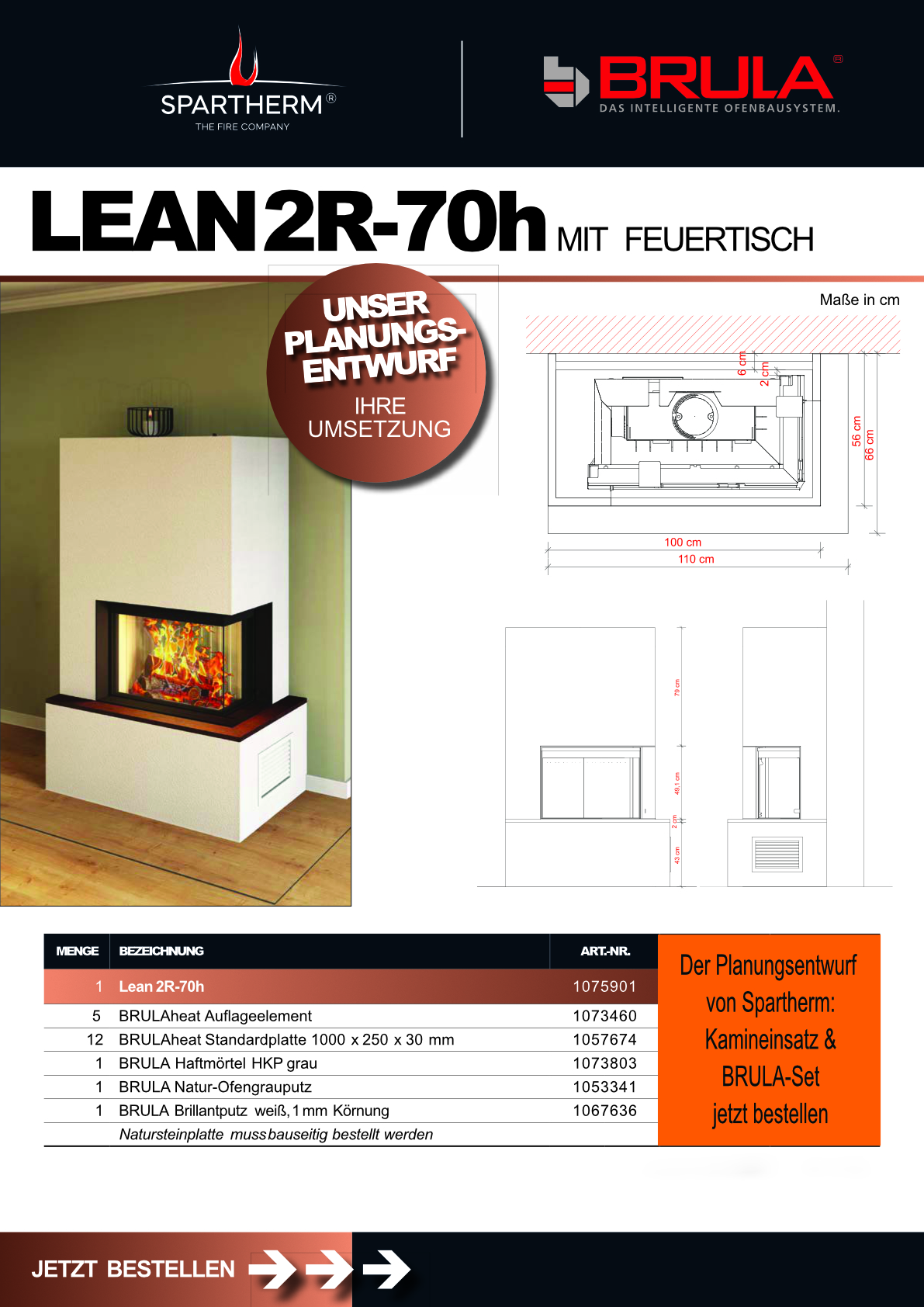 Kamineinsatz Spartherm Lean 2R-70h optional mit BRULA-Set