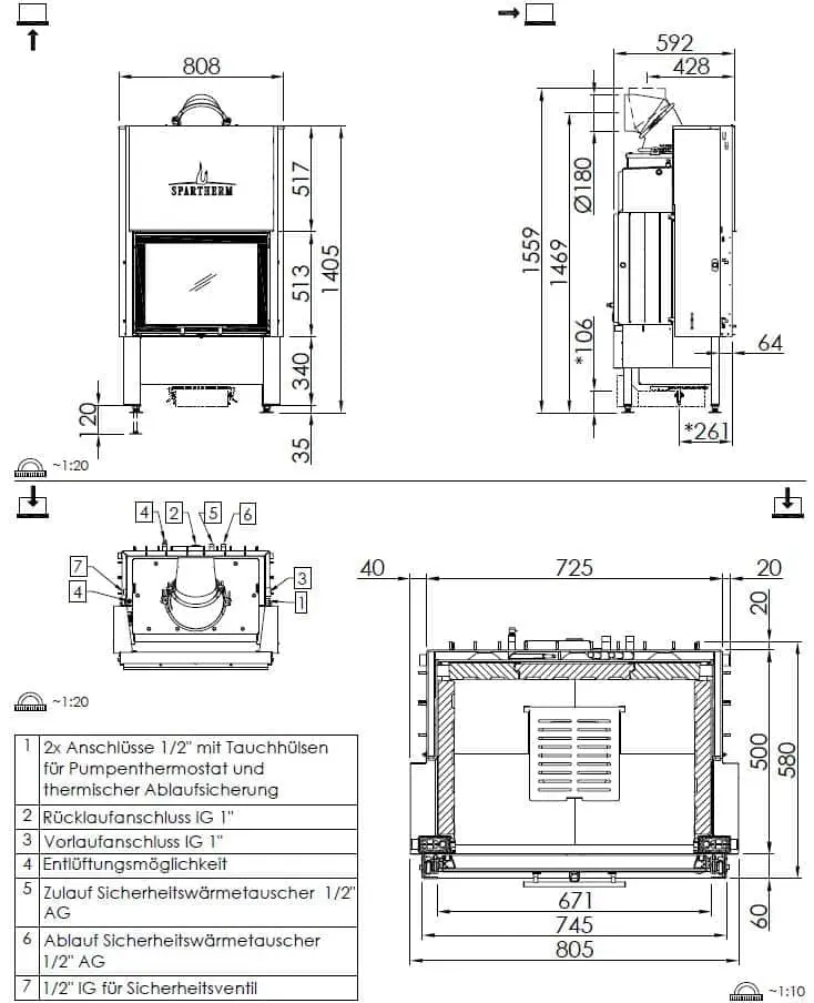 Kamineinsatz Spartherm Varia 1V H2O XXL Türanschlag rechts wassergeführt