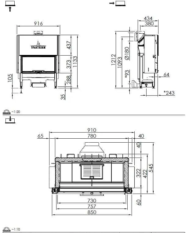 Kaminbausatz Spartherm SIM Varia 2Rh Tür hochschiebbar