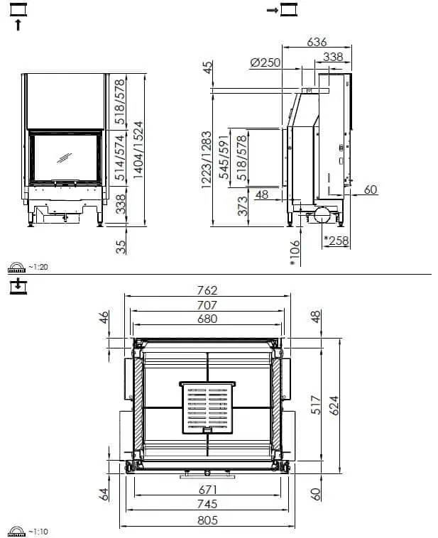 Kamineinsatz Spartherm Varia FDh Tür hochschiebbar Türhöhe vorne: 57.4 | hinten: 56.7