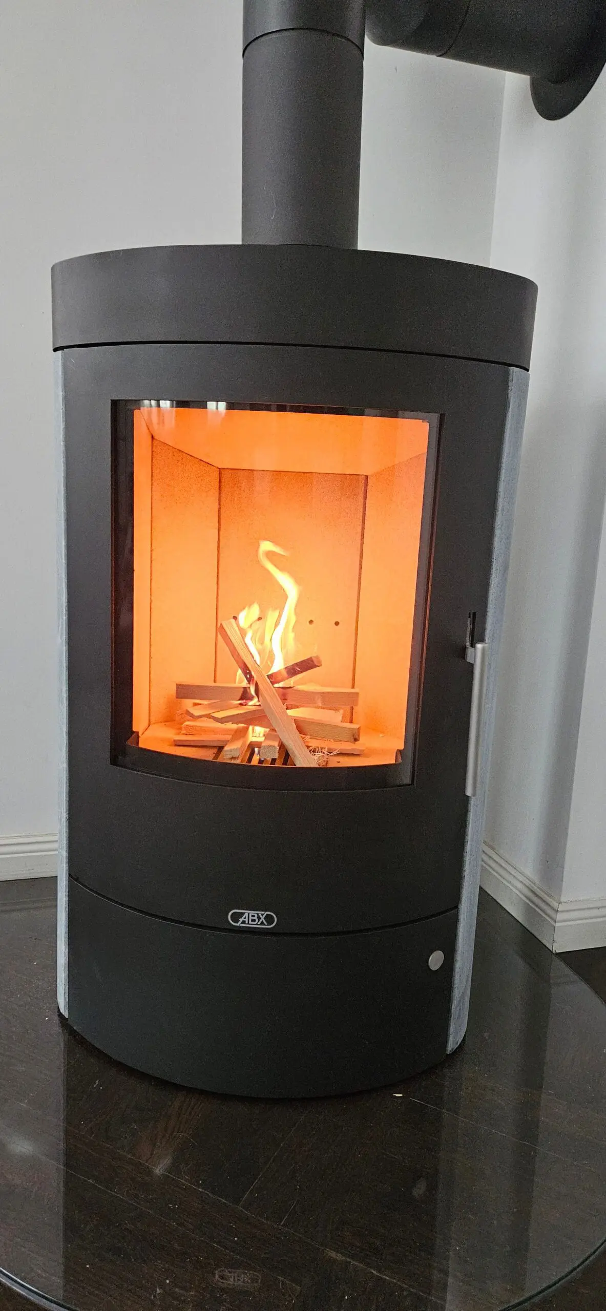Kaminofen ABX Attersee Stahl schwarz Kalkstein cream Osterdeal