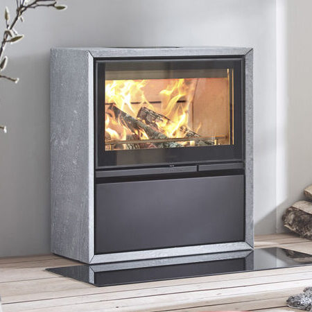 Kaminofen Contura 690AG Style Korpus schwarz Abdeckung Artstone Naturell Glasfront