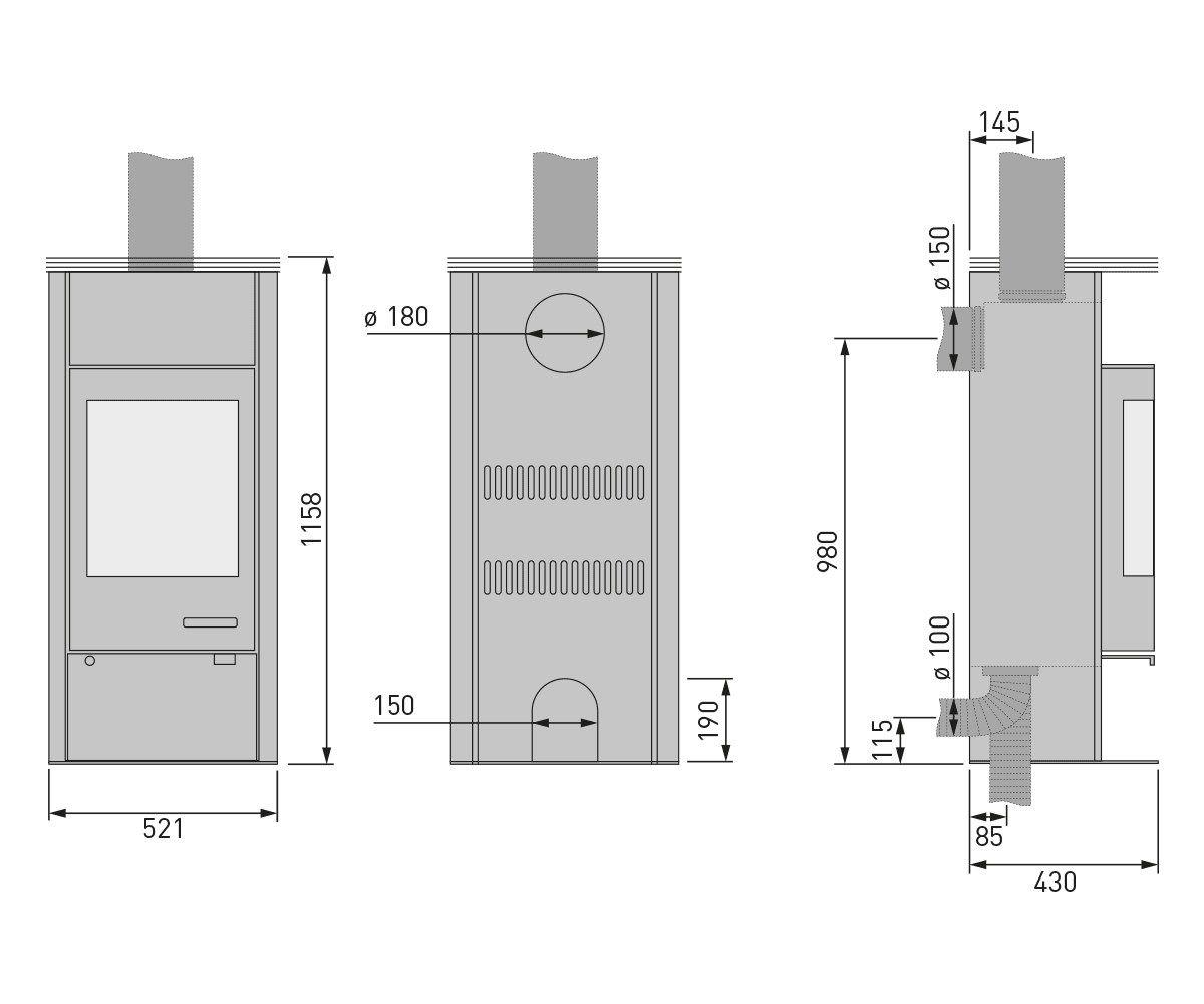 Anschlussmöglichkeit Rauchrohrhinten, oben
