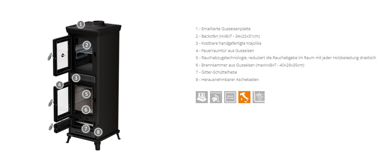 Kaminofen Thermorossi Anna Evo Easy schwarz mit Backrohr Osterdeal