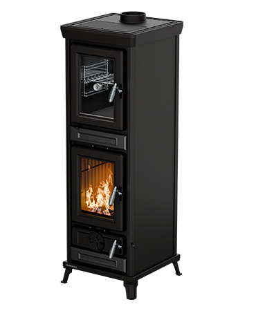 Kaminofen Thermorossi Vittoria Evo (Höhe 109 cm) Easy schwarz mit Kochplatte für Notfälle Osterdeal