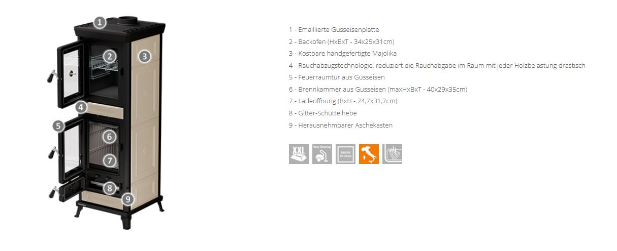 Kaminofen Thermorossi Ilaria Evo (Höhe 97 cm) Maiolica beige-ahornweiß mit Kochplatte für Notfälle im Top Deal
