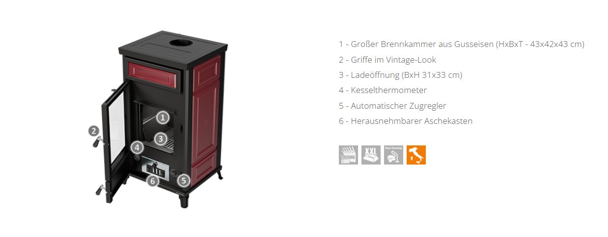 Tischherd Thermorossi Bosky Country F30 bordeaux wassergeführt