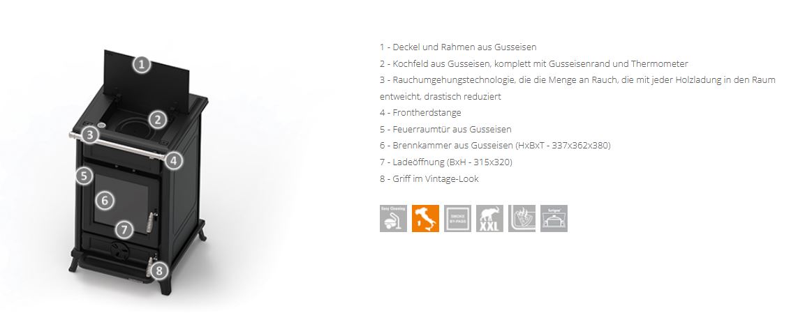Tischherd Thermorossi Bosky Country F30 coffee wassergeführt