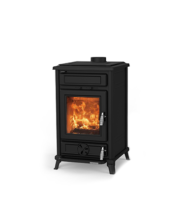 Kaminofen Thermorossi Ilaria Evo (Höhe 97 cm) Easy schwarz mit Kochplatte für Notfälle im Top Deal