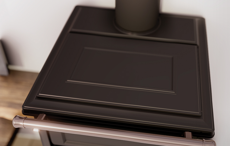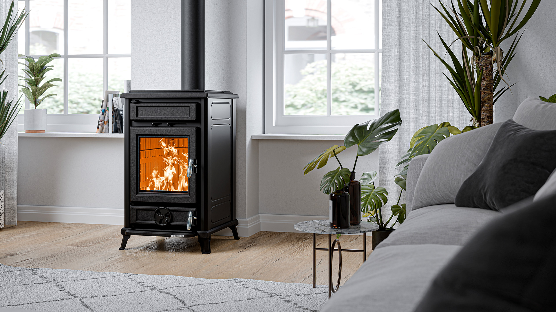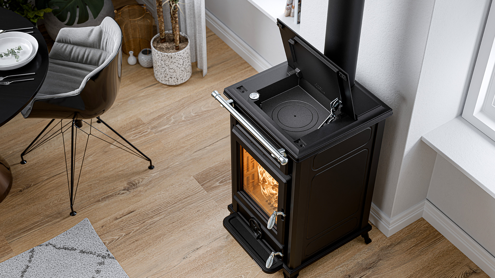 Kaminofen Thermorossi Agora schwarz mit 2 Kochplatten im Special Sale