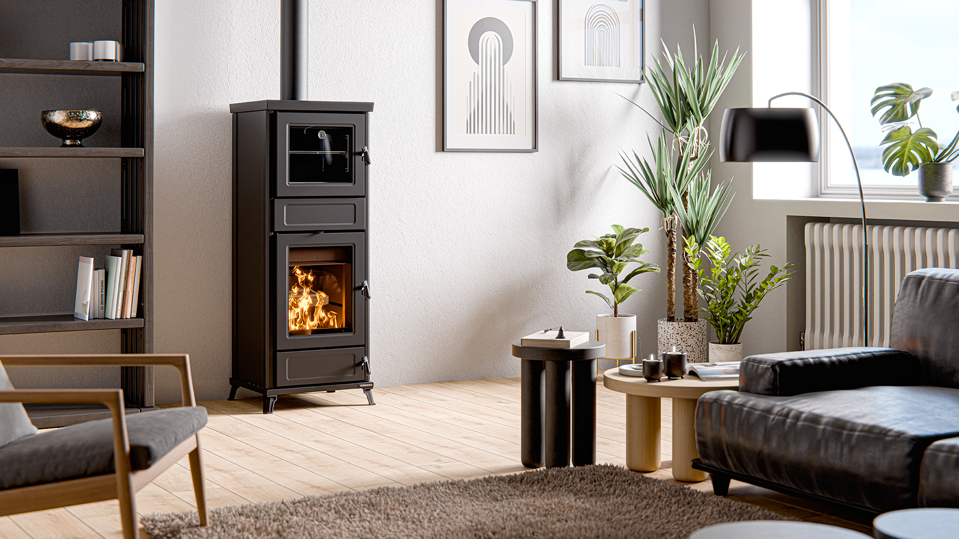 Kaminofen Thermorossi Agora schwarz mit 2 Kochplatten im Special Sale