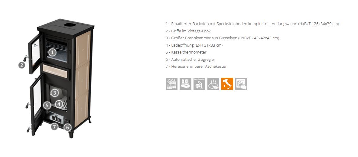 Tischherd Thermorossi Bosky Country 30 beige wassergeführt