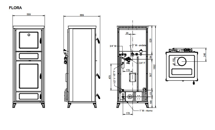 Kaminofen Thermorossi Flora Easy mit Backrohr wassergeführt