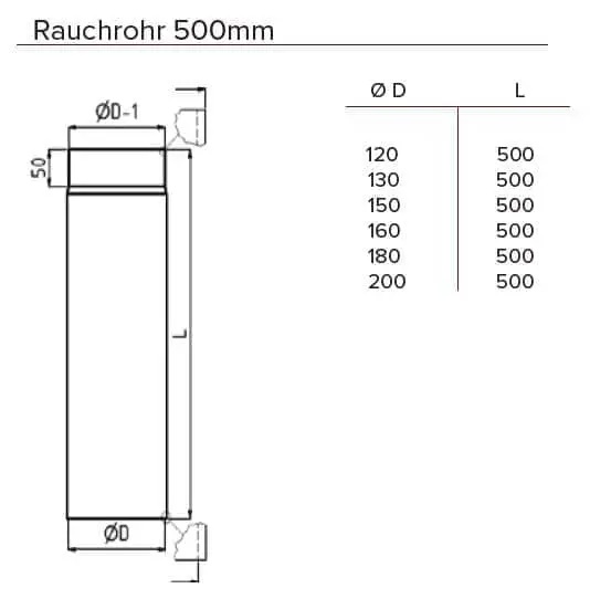 Rauchrohr schutzlackiert 500 mm Ø 150 mm
