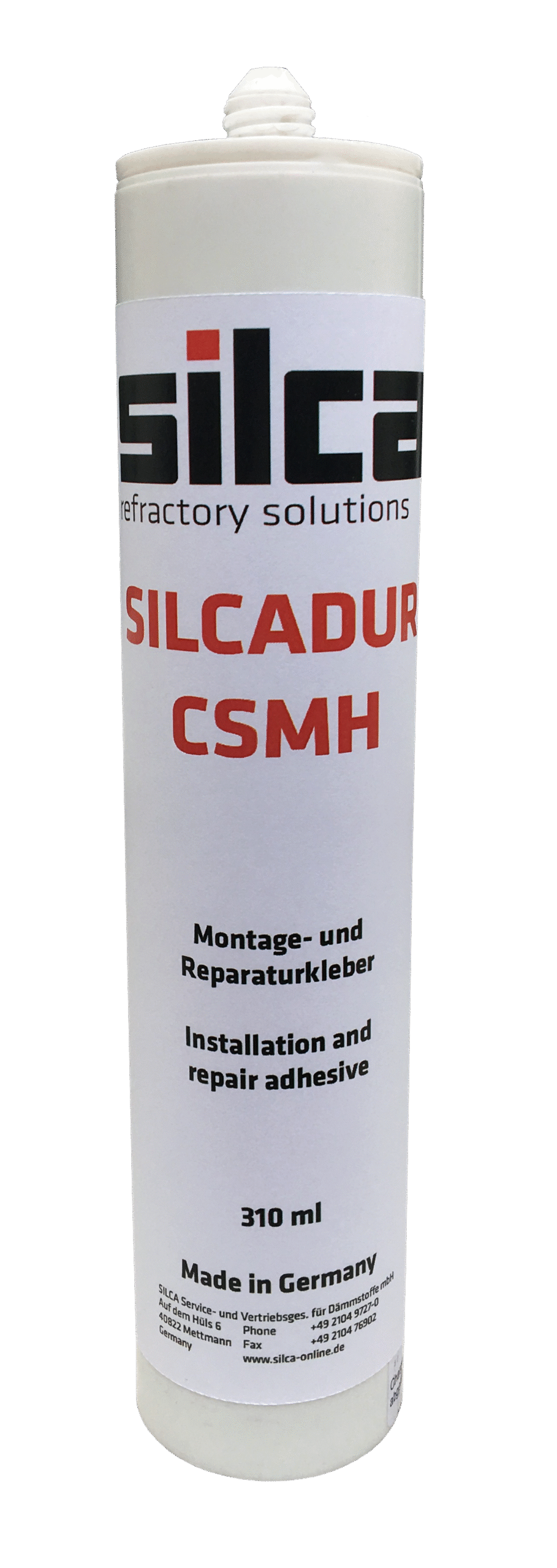 SILCADUR-CSMH ist ein Reparaturkleber auf anorganischer Basis mit einer Klassifikationstemperatur von 1.300 °C. Er dient zur Verklebung von dichten Calciumsilikaten oder anderen mineralischen Baustoffen untereinander, aber auch zur Ausbesserung von Rissen, Bruchstellen, etc. bei Schamotte oder Vermiculite Produkten innerhalb der Feuerstelle.