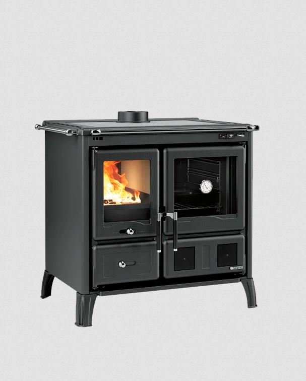 Kaminofen La Nordica Isetta con cerchi 16 schwarz Gusseisen mit Kochplatte für Notfälle im Special Sale
