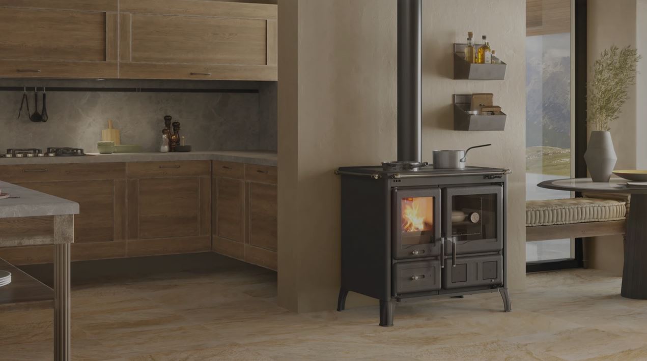 Kaminofen La Nordica TermoRossella Plus Forno D.S.A. Liberty panna mit Backrohr wassergeführt