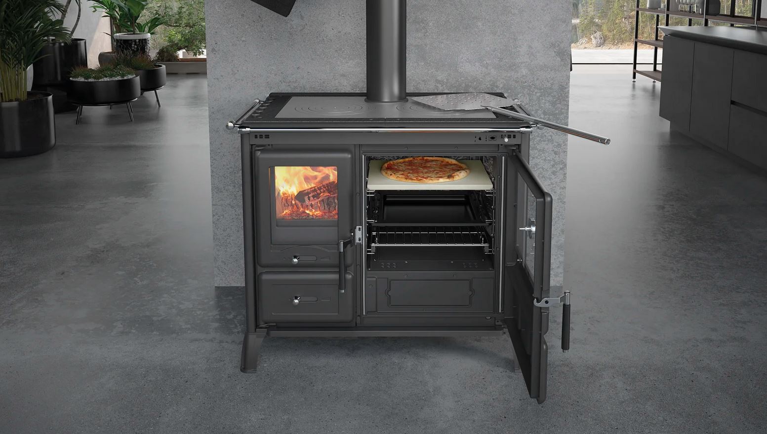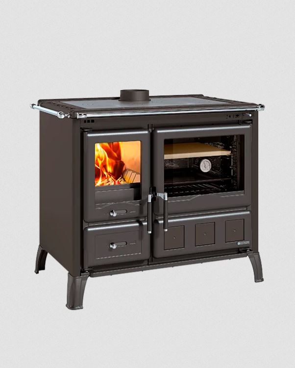 Kaminofen La Nordica Isetta con cerchi 16 schwarz Gusseisen mit Kochplatte für Notfälle im Special Sale