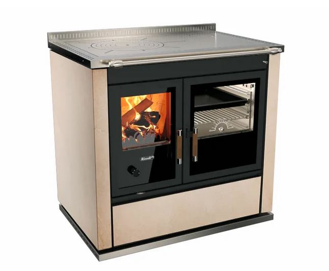 Die Holzherde dieser Serie bieten dank der Feuerraumtür mit Doppelverglasung und der Shiny Glass®-Technologie sowie einer geräumigen Brennkammer, die vollständig mit feuerfestem Material ausgekleidet ist, einen beeindruckenden Blick auf das Feuer. Zudem verfügen sie über einen großzügigen, beleuchteten Edelstahl-Backofen. Die besondere Feinsteinzeugverkleidung (Gres) macht die Herde perfekt für eine freistehende Installation und verleiht ihnen einen modernen, ansprechenden Stil mit reichen Farb- und Materialeffekten, die das Edelstahl zur Geltung bringen und die Wärme optimal abgeben. Die Holzherde sind mit einer praktischen Herdstange vorne sowie einer großzügigen Holzlade ausgestattet.
